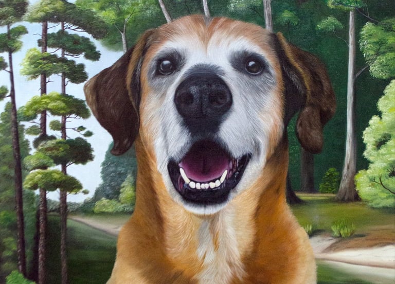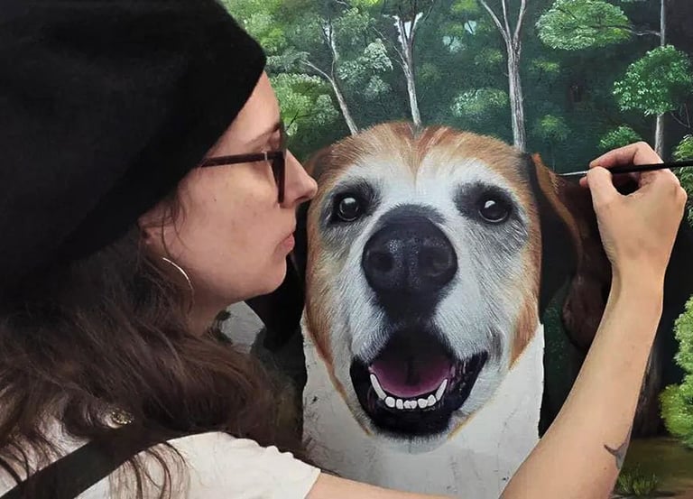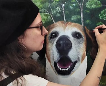 Mais do que pintar um cão, Flávia captura a conexão única que existe no olhar do seu melhor amigo. Inspirada por "Woody", sua musa inspiradora, cada pincelada revela a lealdade e a alegria que eles trazem ao lar. Uma homenagem à altura do amor que eles nos dão.