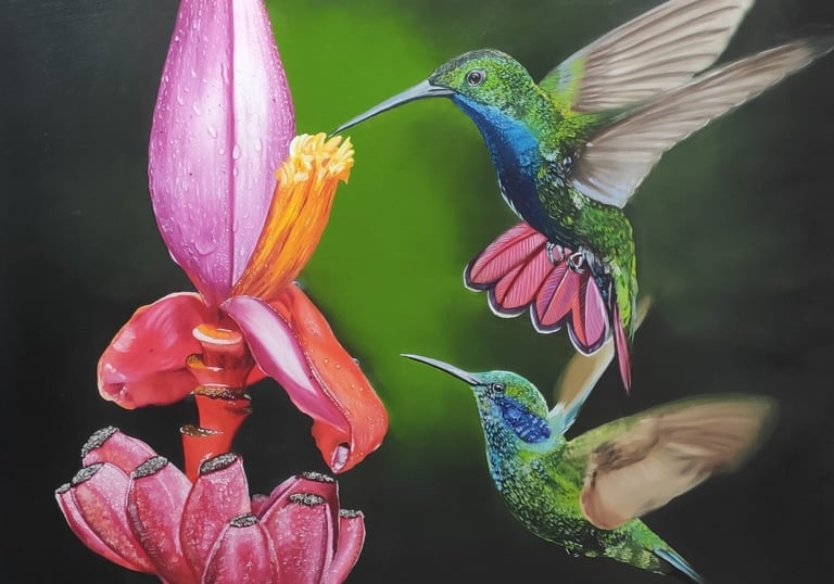 Semanas de dedicação aplicando a técnica de realismo, onde cores e pinceladas criam um realismo que "respira".