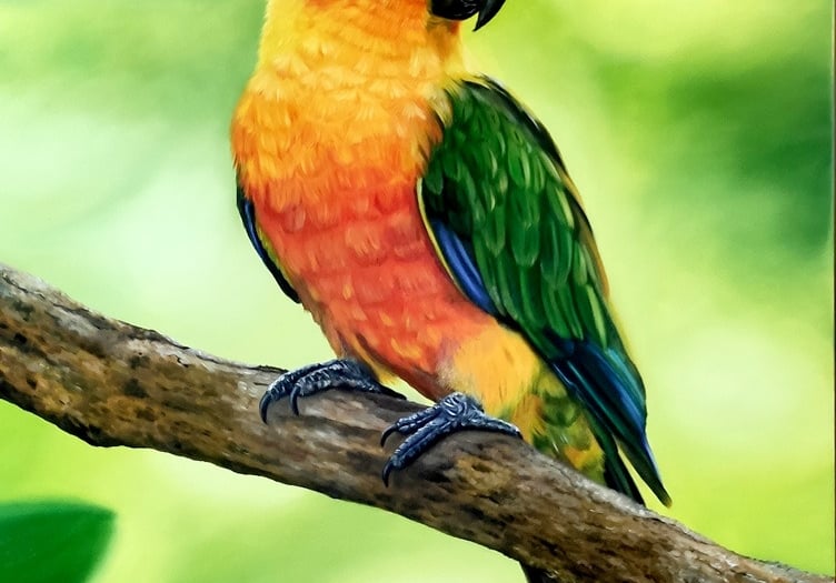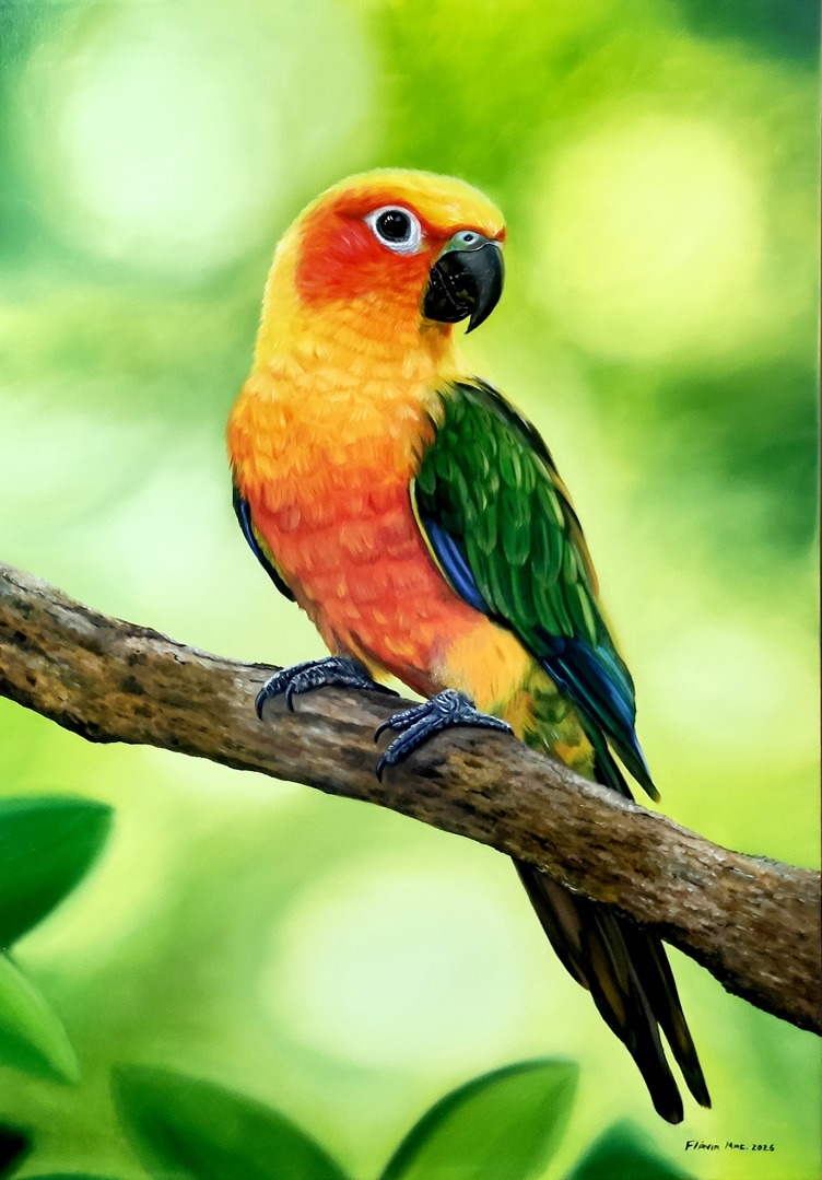 Semanas de dedicação aplicando a técnica de realismo, onde cores e pinceladas criam um realismo que "respira".