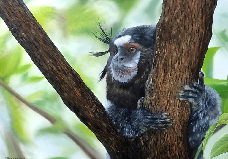 A liberdade das aves, a força dos cavalos e a serenidade das paisagens. Com técnica apurada de luz e sombra, representada pela obra "Blue Jay", Flávia traz a vibração da natureza para dentro de ambientes sofisticados. Perfeito para colecionadores e decoração de alto padrão.